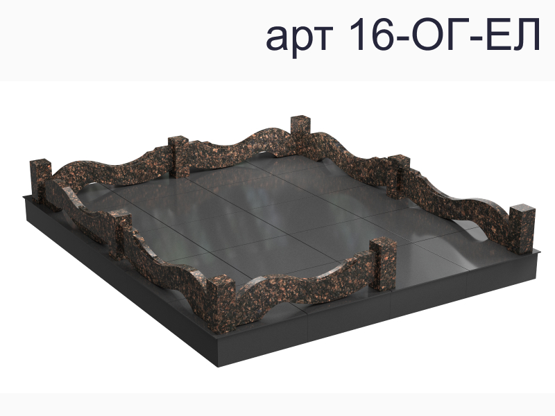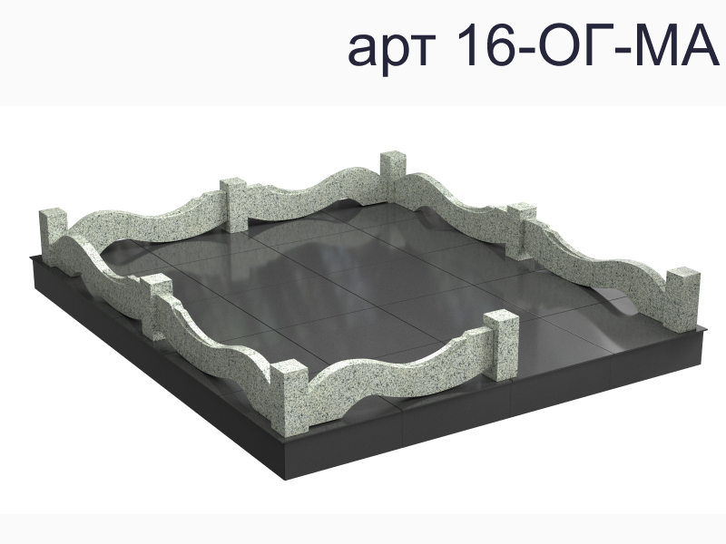 Фигурная ограда может быть выполнена из различных пород гранита и мрамора. Стоимость указана за ограду на участок 2*2,3. Она может изменяться в зависимости от породы камня и размеров изделия.