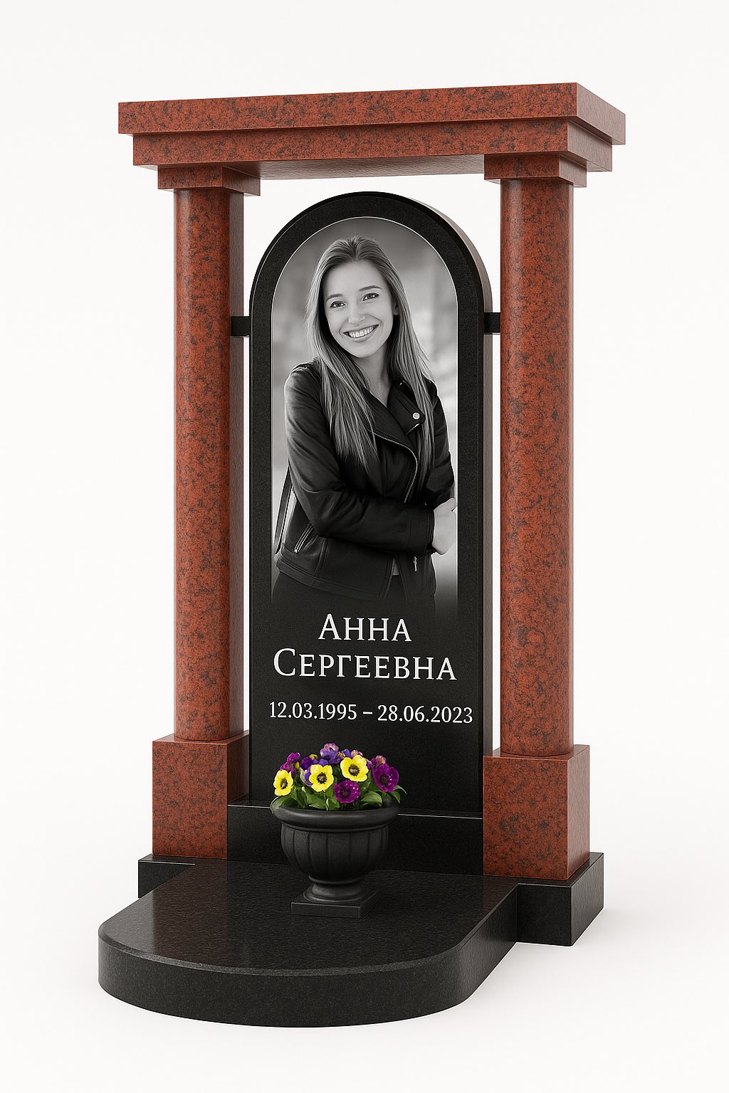 с аркой, фотопортретом на стекле и вазоном из полимербетона