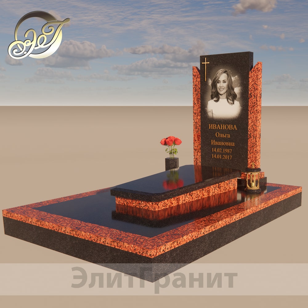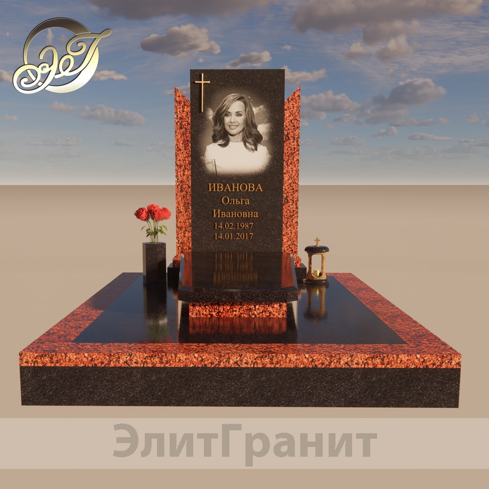 3D модель гранитного памятника от компании ЭлитГранит Минск. Выполнен из гранита Лезниковский и Габбро-Диабаз. Медальон стеклотриплекс.
