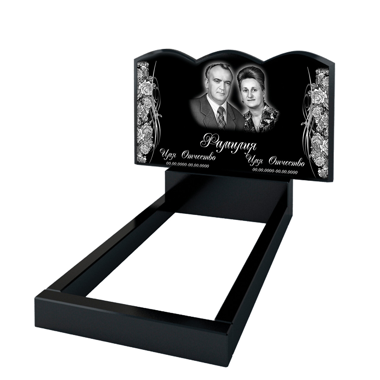 Памятник из габбро-диабаза с горизонтальной стелой — семейный комплект