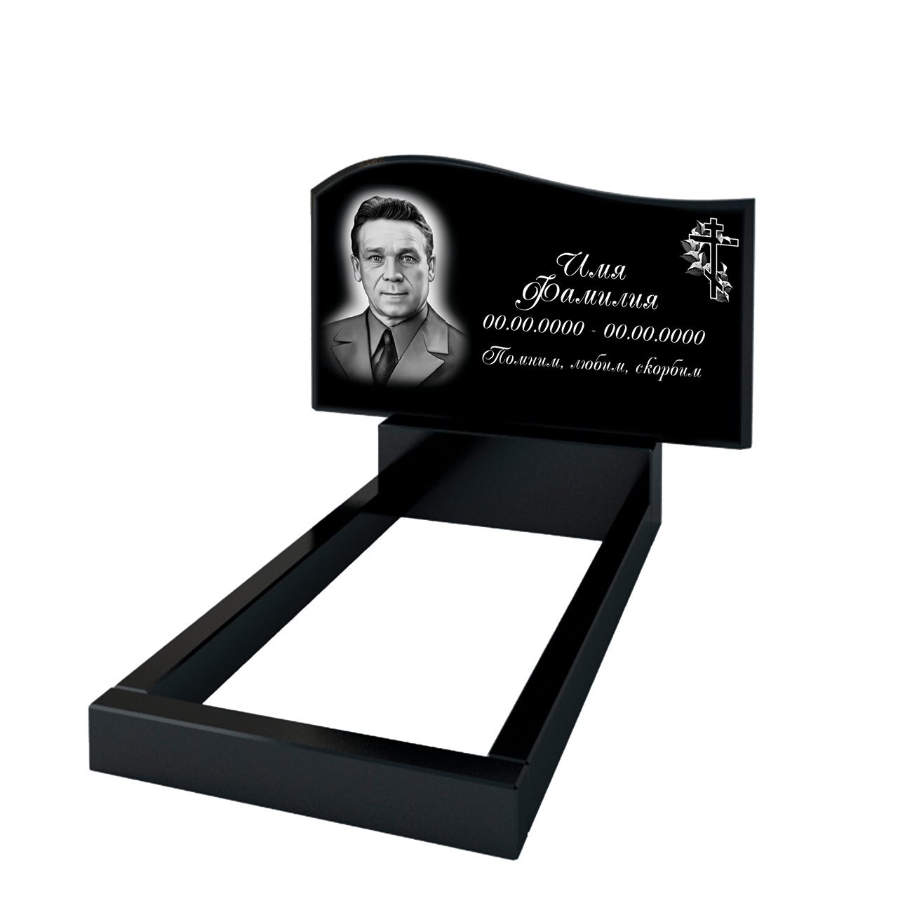 Памятник из габбро-диабаза с горизонтальной стелой — семейный комплект